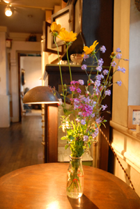今日の開店一番は革職人の透くんとフラワーショップ栄のゆかこちゃん。