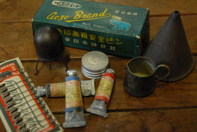 荷物が入ってきたとき、お片付けをしているとき、 木箱や段ボール箱のすみっこに必ず入っているがらくた。 お店の売り物にはならない・・けど、ゴミとするにはちょっと。 だって、なんだかイイカンジ。かわいいじゃありませんか。 そういって拾うちいさながらくた。 一個だけ見つけた貝ボタン、使いかけの絵具、瓶のふた。 なんかの機械の部品とかネジ。紙箱、錆びた鉄。 抽斗の中に敷いてあった素敵なデザインの包装紙。 子供と一緒に探す。たのしい時間。 これ、いいよね!と、子供が差し出すもので その子のセンス・成長がわかる。 見つけるとお互い目を見てにやり。 子は どう?いいの見つけたでしょ、というかんじで。 私はこれがよいと思うセンスが身に付いていたのか!と、瞠目。 なかなかいいセンスじゃあないですか!(親ばか) 写真のものは子供部屋に飾りました。